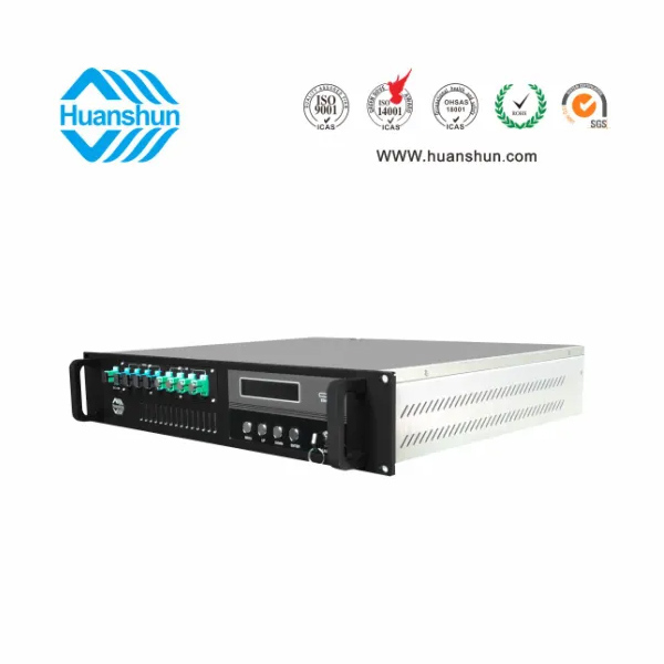 隨著廣電全光網(wǎng)傳輸光纖到戶方案(FTTH)的實施,當EDFA在CATV系統(tǒng)中用作級聯(lián)放大時,系統(tǒng)C/N會嚴重劣化,因此要求EDFA具有高的飽和輸出功率、低的失真,而鉺鐿共摻(EYDFA)雙包層大功率光纖放大器滿足這一需求,以適應當前FTTH和FTTB網(wǎng)絡的需求。FTTH除傳輸1550nm CATV光信號的同時,還需E/GPON DATA光信號傳輸,合波型大功率光纖放大器是在EYDFA的基礎上結合FWDM器件,有機地把1550波段CATV光信號與1310/1490nm PON DATA光信號進行合波傳輸。