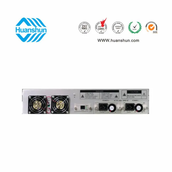 19 " 2U/3U標準機箱,-5 ~ +10 d Bm輸入,8路標稱規(guī)格(16、17、18、19、20、21、22、23、24dBm)放大輸出,并支持下調(diào)-2dB,安全連接模式,NF ≤ 5dB(0dBm時);內(nèi)置FWDM合波器,插播損耗 ≤ 1dB;雙模塊熱插撥電源,AC90 ~ 255V或DC-48V供電,RJ45標準網(wǎng)管(支持SNMP、WEB)