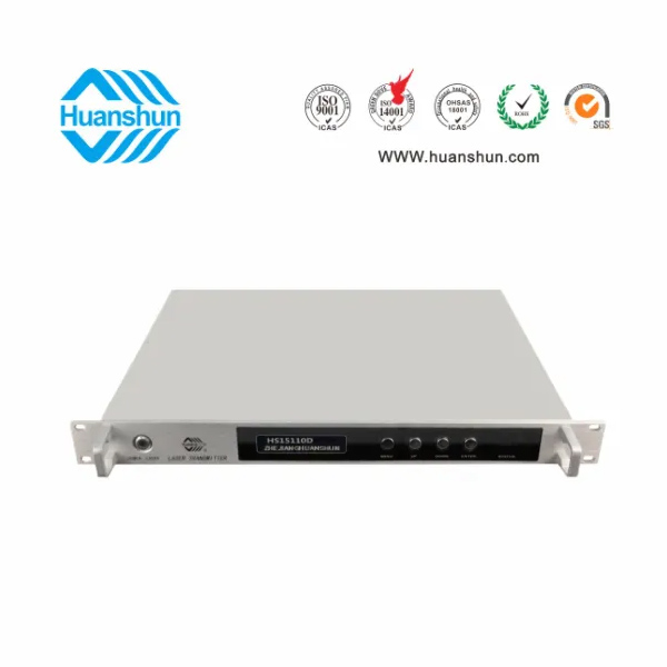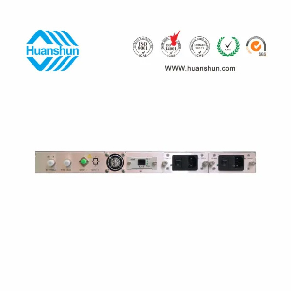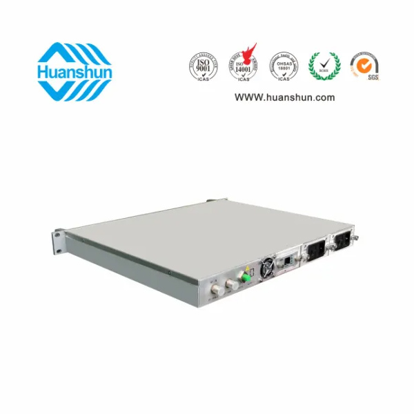 直調制光發射機 | HS 15107D | RF80 ± 5 dBuv 輸入,ITU 1550nm, ≥ 7、10 dBm 輸出;1U標準機箱,雙模塊熱插撥電源,AC90 ~ 255V或DC-48V供電,RJ45標準網管(支持SNMP、WEB) |